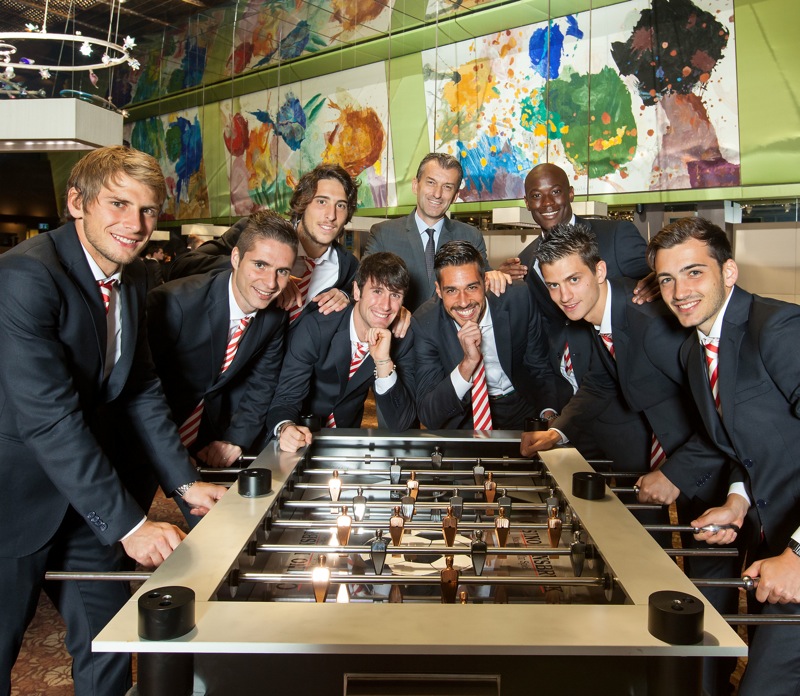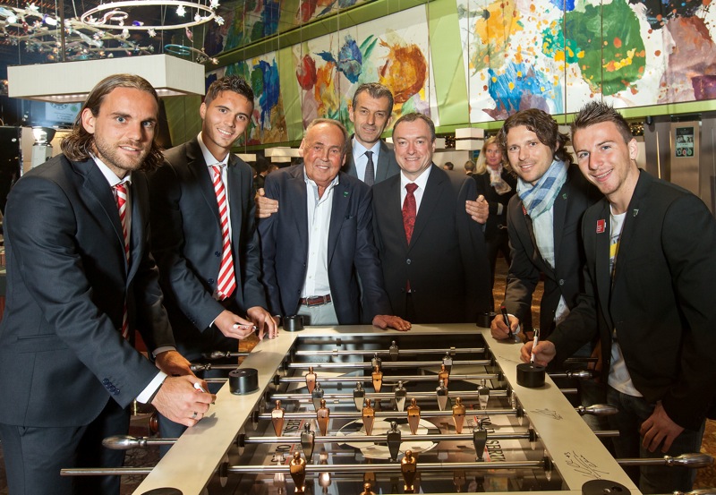 Der exklusive VIP-Fußballtisch wurde anlässlich des Treffens von den hochkarätigen Gästen signiert und wird demnächst einem karitativen Zweck gewidmet.
