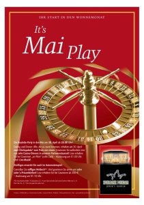 Unter dem Motto „It’s Mai Play!“ lädt die Spielbank Potsdam am Sonnabend, den 30. April, zur Roulette-Party in den Mai ein.