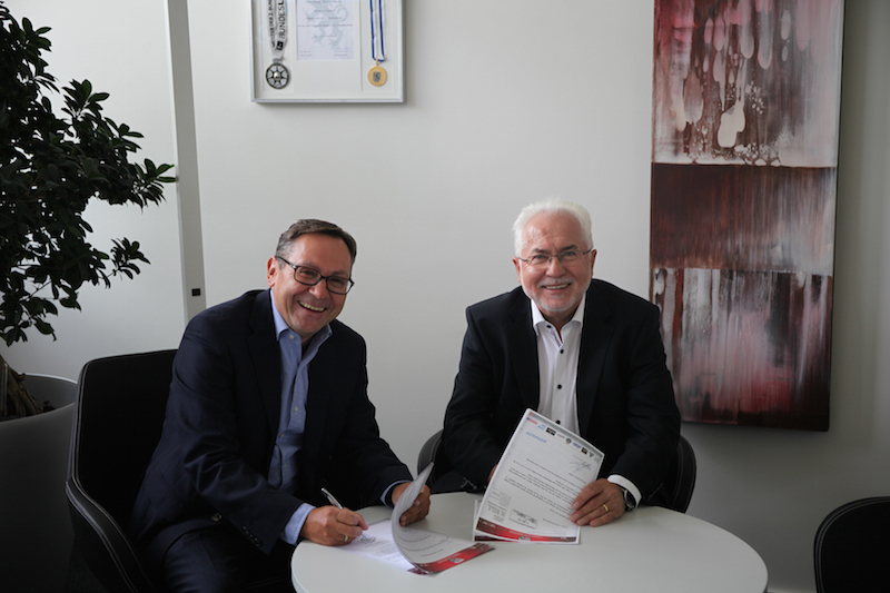 Franz Spitzauer, Geschäftsführer Finanzen & Marketing beim FC Ingolstadt 04 (links) und Erwin Horak, Präsident von Lotto Bayern bei Vertragsunterzeichnung. (Foto: FC Ingolstadt 04)