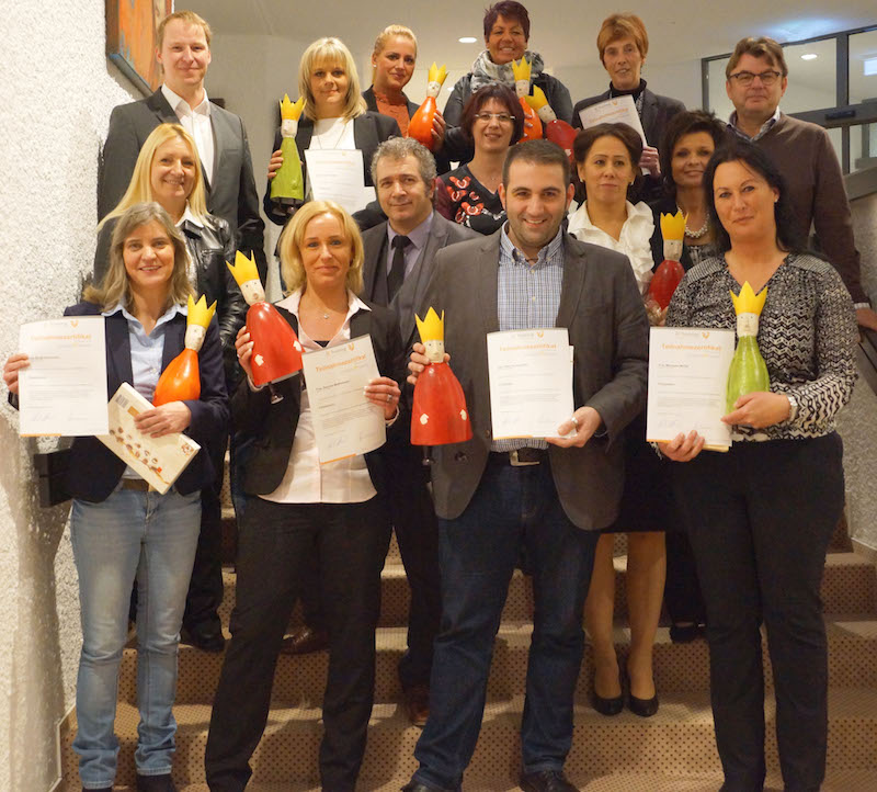 „Ich gratuliere Ihnen zum erfolgreichen Abschluss Ihrer Weiterbildung. Es freut mich, dass Sie sich mit so viel Engagement und Fleiß auf diese Ausbildung eingelassen haben. Neue Herausforderungen liegen vor Ihnen. Es wird sicherlich in Zukunft nicht immer einfach sein, die eine oder andere Entscheidung zu treffen, aber sie sind nun bestens vorbereitet“, so Axel Schmidt während der Übergabe der Zertifikate. Auch die beiden Trainer Gudrun Klerner und Johannes Bollingerfehr gratulierten den neuen Filialleiterinnen und Filialleitern. „Den Führerschein zum Führen habt Ihr gemacht; nun muss jeder von Euch das Fahren bzw. Führen in der Praxis anwenden“, so die beiden Trainer.