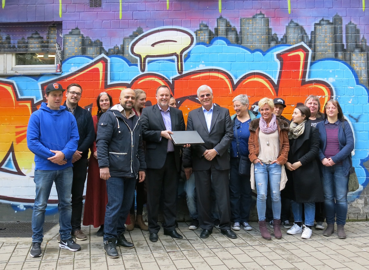 Insgesamt 11 Laptops wurden deshalb am Donnerstag, dem 28. April, an die freien Träger der Jugendhilfe vergeben. Falko Liecke bedankte sich im Namen der Einrichtungen und des Bezirksamtes Neukölln für das Engagement und Geschäftsführer Wolfram Seiffert versprach, dem Bezirk auch in Zukunft unter die Arme zu greifen.