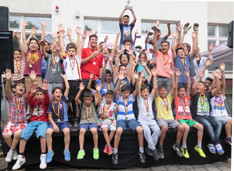 Die strahlenden Sieger nach harten Kämpfen waren im Kleinfeld dann schließlich das Team vom Spielplatz Wilde Rübe und im Großfeld die Kinder von der Kinderwelt am Feld. In Wahrheit durften sich am Ende aber alle Teilnehmer des Turniers als Gewinner fühlen. „Vielen Dank für einen rundum gelungenen Tag“, hieß es dann auch nach der Siegerehrung von den Leitern der sozialen Einrichtungen. Müde aber glücklich ging es für die Kinder nach dem Turnier wieder nach Hause – jedes mit einer goldenen Medaille um den Hals und einem Strahlen im Gesicht.