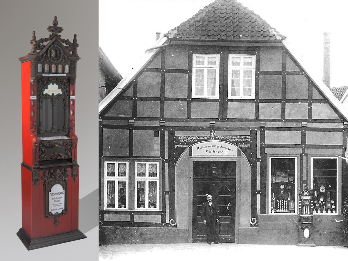 Münzautomaten in Lübbecke: Stollwerck-Rhenania am Restaurant Zur goldenen Uhr.