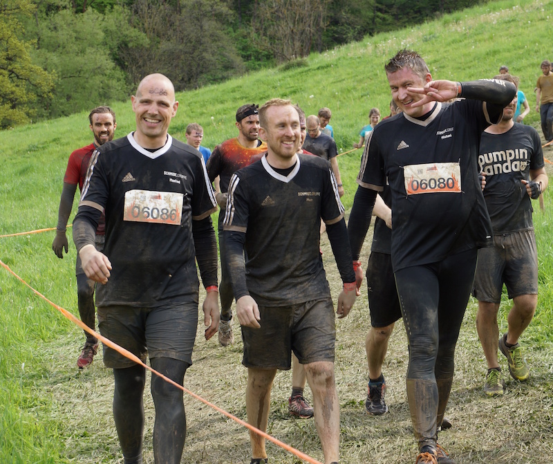 Nur im Teamwork waren die Hindernisse wie etwa „Everest“ (man musste eine Halfpipe hochrennen) oder „Berlin Walls“ (Bretterwand musste überstiegen werden) zu schaffen. Die körperliche Fitness und Leidensfähigkeit wurde bei Bergläufen oder teichgroßen Matsch- und Wasserbecken abverlangt.