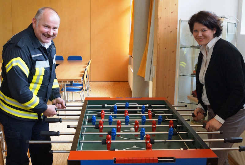 „Alarmstimmung“ der anderen Art herrscht seit kurzem wieder in der Florianstube der Feuerwehr Coesfeld. Wenn die haupt- und ehrenamtlichen Rettungskräfte Zeit haben, dann können die engagierten Helfer wieder eine Partie Kickern.