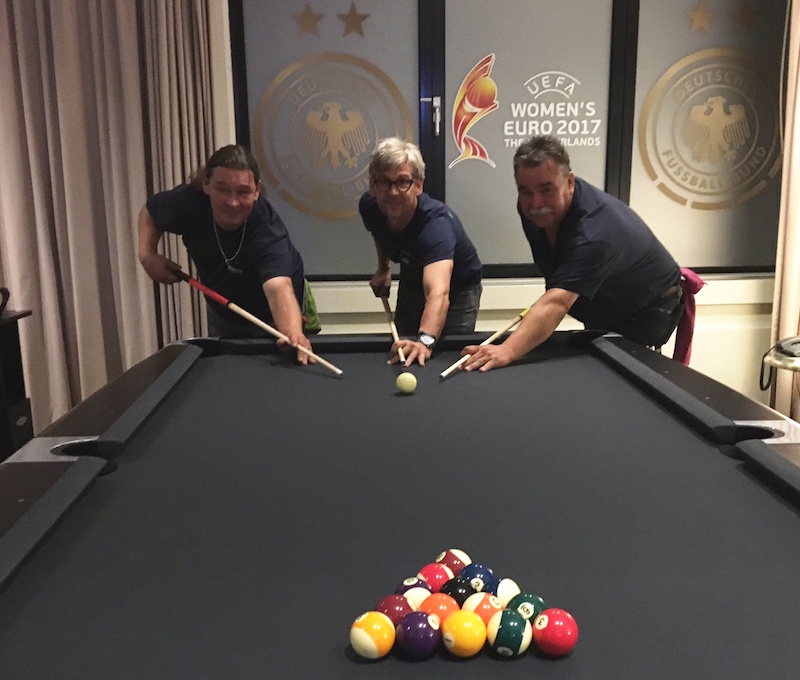 Im Mannschaftshotel im holländischen Sint-Michielsgestel, dem sogenannten Base Camp, wartet auf die Spielerinnen rund um Bundestrainerin Steffi Jones eine Players Lounge. Wenn am Rande von Trainings und Team-Meetings Zeit ist, können die Europameisterinnen von 2013 bei Billard, Tischtennis oder Dart entspannen und sich auf die Spiele vorbereiten.