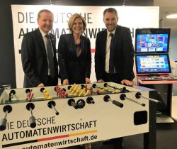 Die sichtlich interessierte Julia Klöckner nutzte die Gelegenheit für ein kurzes Kicker-Spiel am DAW-Stand mit Thomas Knollmann und Jörg Meurer und suchte, ebenso wie viele andere Teilnehmer, das Gespräch über die DAW-Qualitätsinitiative 2020, die von den Branchenvertretern erläutert wurde.