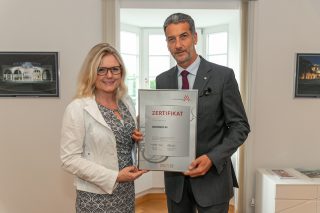Wien – Der Gaming-Technologiekonzern NOVOMATIC wurde zum zweiten Mal in Folge als österreichischer Leitbetrieb zertifiziert. Als Leitbetriebe werden nach einem umfassenden Screening jene vorbildhaften Unternehmen ausgezeichnet, die nachhaltigen Unternehmenserfolg aufweisen, Innovation vorantreiben und sich zu gesellschaftlicher Verantwortung bekennen. NOVOMATIC-Vorstandsvorsitzender Harald Neumann nahm die Auszeichnung von Leitbetriebe Austria-Geschäftsführerin Monica Rintersbacher im Novomatic Forum entgegen.
