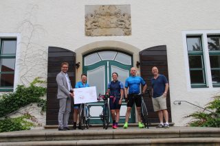 Endstation war für die 19-köpfige Gruppe das Schloss Benkhausen, wo Armin Gauselmann, Vorstand der Gauselmann Gruppe, alle Teilnehmerinnen und Teilnehmer begrüßte. Während der Tour hatten die Radler über eine Fundraising-Seite bereits Geld für die britische Organisation „Children´s Bereavement Centre“ gesammelt. Diese unterstützt Kinder und Jugendliche, die eine nahestehende Person, durch z.B. Krankheit oder Tod, verloren haben. Armin Gauselmann erhöhte den Betrag um 2.500 britische Pfund, sodass insgesamt 18.400 Pfund zusammen, was rund 20.900 Euro entspricht. „Ich zolle große Anerkennung für diese Leistung. So eine Strecke in nur vier Tagen zu absolvieren ist eine echte Beanspruchung der körperlichen Fitness. Dass die drei das auf sich genommen haben, um für einen guten Zweck Geld zu sammeln, ist eine tolle Aktion, die wir als Unternehmerfamilie gerne unterstützen“, so Armin Gauselmann.