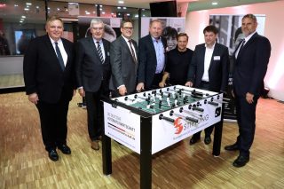 Heinz Basse, AVN-Vorsitzender, begrüßte die Gäste bereits vor der Arena und motivierte die Parlamentarier, ihr Können an der Dart-Torwand zu beweisen. Für die besten drei Schützen gab es einen Kickertisch zu gewinnen, der traditionell für den guten Zweck gespendet wird. „Ich freue mich sehr, dass Sie unserer Einladung gefolgt sind und sich die Zeit für offene Gespräche nehmen. Das miteinander statt übereinander Reden, die stetige Kommunikation zwischen Politik und Branche, sind für uns wichtig und wünschenswert“, so Heinz Basse.