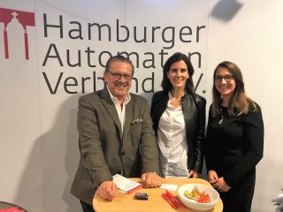 V.l.n.r.: Gundolf Aubke (HAV-Vorsitzender), Katja Suding MdB (Landesvorsitzende FDP Hamburg und stellv. FDP-Bundesvorsitzende), Jennifer Broocks (DAW-Länderreferentin). (Foto: DAW/AWI)Am 17. November war der Dachverband Die Deutsche Automatenwirtschaft e.V. (DAW) gemeinsam mit dem Hamburger Automatenverband e.V. (HAV) mit einem Stand auf dem Landesparteitag der FPD Hamburg vertreten. Neben zahlreichen Bürgerschafsabgeordneten besuchte Katja Suding MdB den Stand. Die Vorsitzende der FDP Hamburg und stellvertretende FDP-Bundesvorsitzende informierte sich im Gespräch mit Gundolf Aubke, HAV-Vorstandsvorsitzender, und DAW-Länderreferentin Jennifer Broocks ausführlich über die Branche.