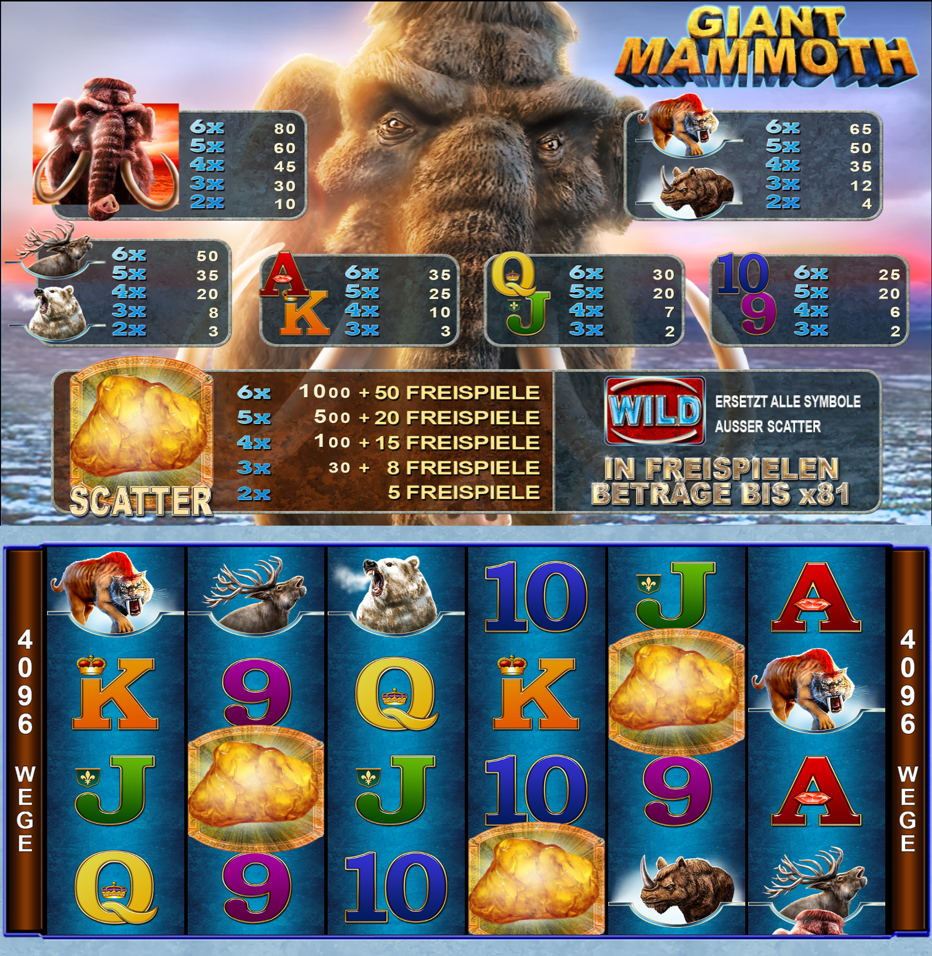 Das Giant Mammoth hat als Scatter ein übergroßes Bernsteinsymbol. 3-6 oder mehr Scatter sorgen für bis zu sagenhafte 50 Freispiele. Zusätzlich verlängern bereits 2 Scatter eine Gewinnserie.