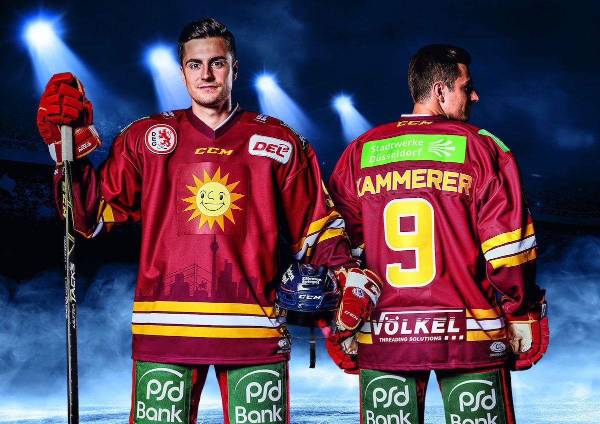 Die lachende MERKUR Sonne, das Markenzeichen der Gauselmann Gruppe, ist sowohl auf den Heim- und Ausweichtrikots als auch bei Spielen der Düsseldorfer EG im ISS Dome auf TV-relevanten Werbebanden sowie einem Bullykreis prominent vertreten.