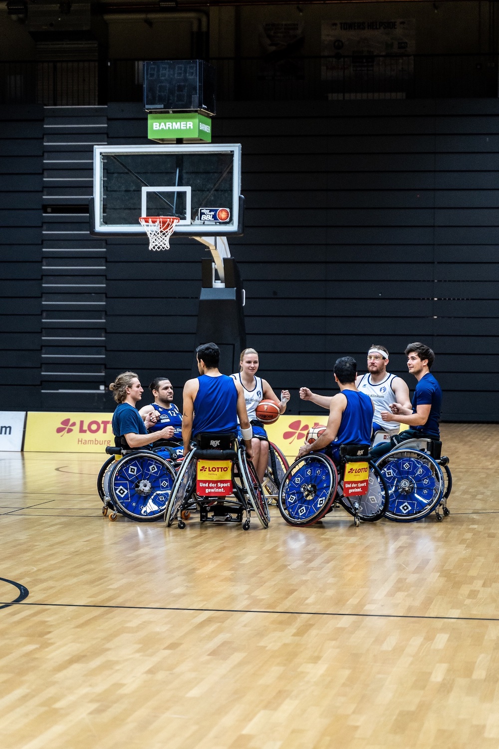 Auch Rollstuhlbasketball ist in Hamburg erstklassig. Das Team der BG Baskets teilt sich mit den Hamburg Towers die Heimspielstätte in Wilhelmsburg und mit LOTTO Hamburg einen starken Partner für den Erstliga-Basketball.