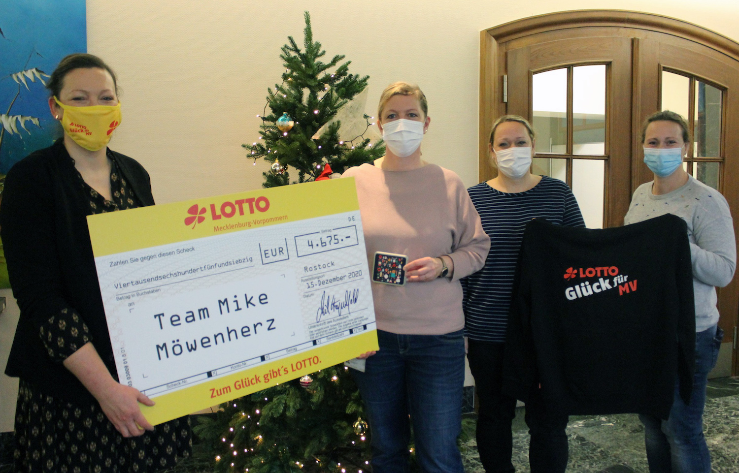 Rostock/Hansaviertel – Mit einem Betrag von über 4.675 Euro unterstützt LOTTO MV das SAPV-Team „Mike Möwenherz“ an der Kinder- und Jugendklinik der Universitätsmedizin Rostock. Die Summe stammt aus einer Abgabe von LOTTO-Hoodies an die Annahmestellenmitarbeiter zu Werbezwecken. „Die Hoodies hatten wir unseren Mitarbeitern in der Verwaltungsgesellschaft und in den LOTTO-Annahmestellen angeboten und dafür einen kleinen Betrag für Mike Möwenherz erbeten.