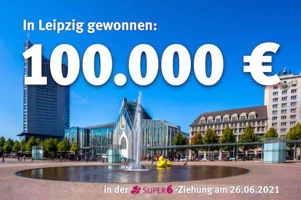 Die Samstagsziehung am 26. Juni 2021 brachte den Höchstgewinn der Zusatzlotterie SUPER 6 nach Leipzig. Der Gewinn entfiel auf einen Lottoschein gefüllt mit 12 Tipps und der Teilnahme an den Zusatzlotterien Spiel 77 und SUPER 6.