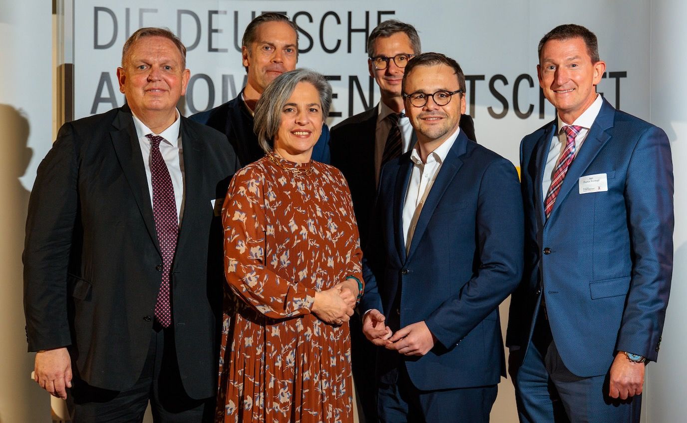 Gruppenfoto DAW-Parlamentarischer Abend in Potsdam, v.l.n.r.: Georg Stecker, Dr. Johannes Weise (DAW Länderbeauftragter), Barbara Richstein MdL, Uwe Schüler (Staatssekretär Ministerium für Infrastruktur und Landesplanung), Dr. Jan Redmann MdL (Vorsitzender CDU-Fraktion), Thomas Breitkopf / Foto: DAW/AWI/Sommer