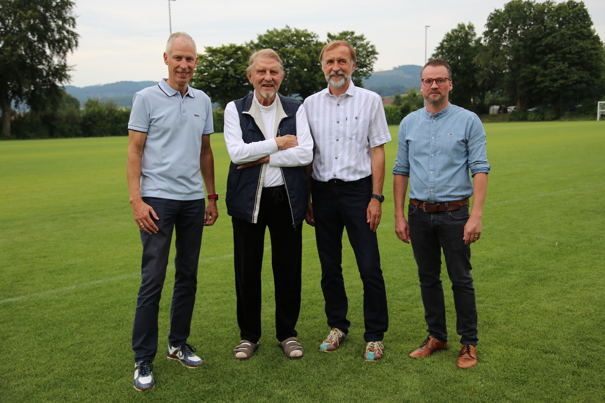 Frank Haberbosch (v. l.), Paul Gauselmann, Bernd Wacker und Philipp Knappmeyer, erster Dezernent der Stadt Lübbecke, bei der feierlichen Einweihung der Sportanlage des BSC Blasheim. (Foto: Merkur Group)