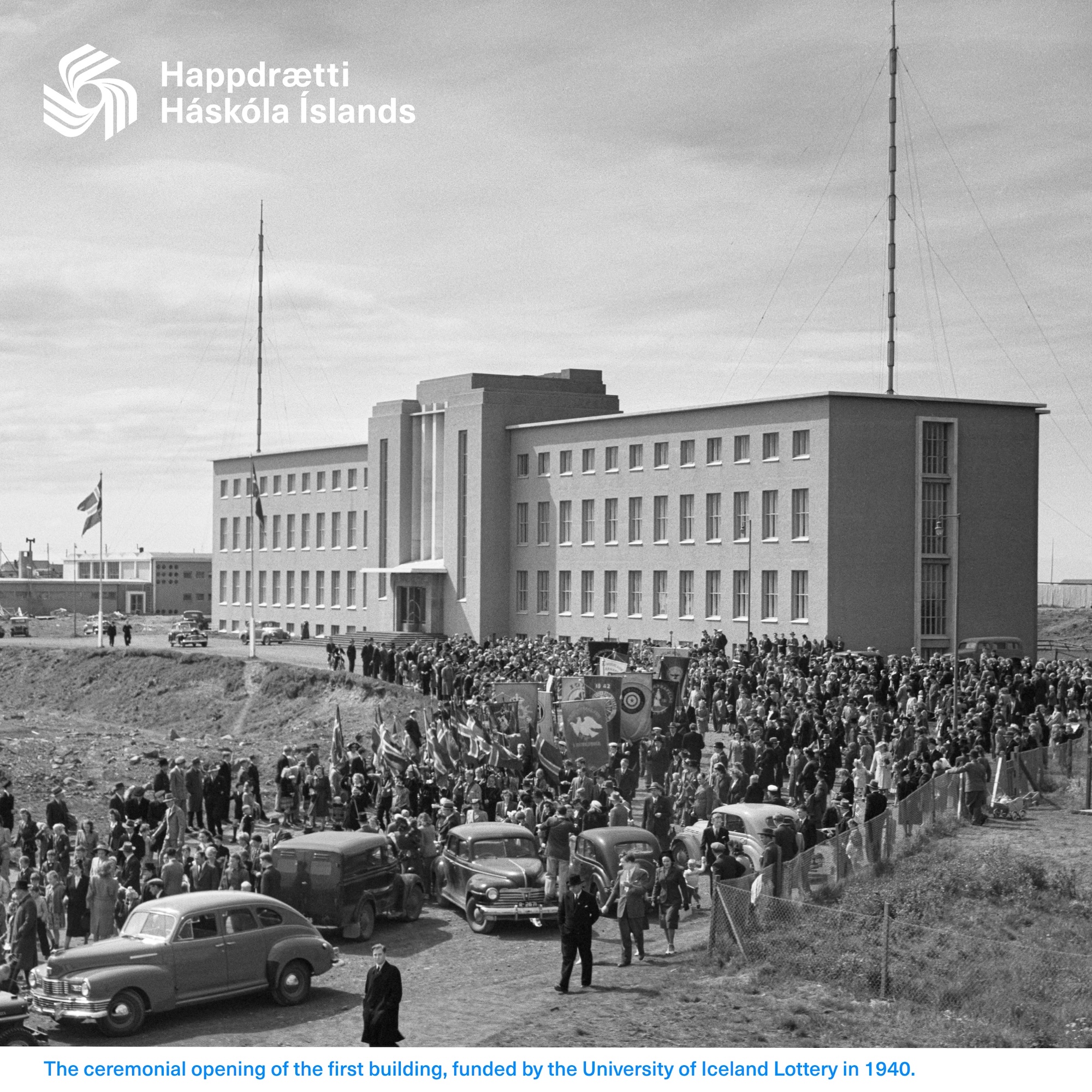 Die feierliche Eröffnung des ersten Gebäudes, finanziert durch die Lotterie der Universität Island im Jahr 1940. (Foto: UIL)