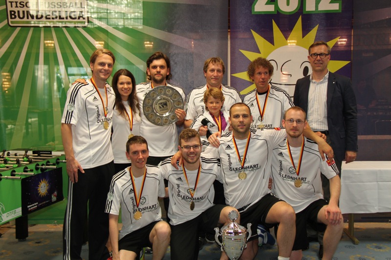 Die Vizemeisterschaft sicherte sich Rekordmeister Braddock Burbach durch Siege in der K.O.-Runde über die Mitfavoriten aus München und Wiesbaden. Das saarländische Team wird seit einigen Jahren ebenfalls exklusiv von der ostwestfälischen Gauselmann Gruppe gesponsert. Wild Card Wiesbaden schaffte wie gewohnt den Sprung auf die Medaillenränge und freute sich über Bronze. Platz vier ging dann letztendlich an die Mannschaft Cim Bom Bom aus Hamburg-Wedel. Professionelle Verstärkung erhielt das Team in diesem Jahr sogar durch eine „echte“ Spielemacherin. Sandra Ranff, die zu den besten Tischfußballdamen zählt, arbeitet bei der edict egaming GmbH in Hamburg, einem Tochterunternehmen der Gauselmann Gruppe. Nach einem Vereinswechsel unterstützt sie nun mit echter Frauenpower die erfolgreiche Herrenmannschaft in der ersten Bundesliga und konnte sich mit ihrem Team über spannende Spiele und den sehr erfolgreichen vierten Platz freuen.