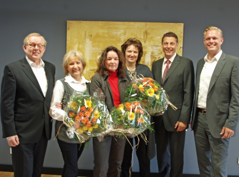 Während der Verabschiedung von Gisela Winterberg dankte die Geschäftsführung auch Marita Gehling, Leitung Rechnungswesen, und Nadja Beer, Vertrieb, für ihre Arbeit im Personalwesen und den Aufbau des Personalbüros, für das Annett Schüler nun verantwortlich zeichnet.
