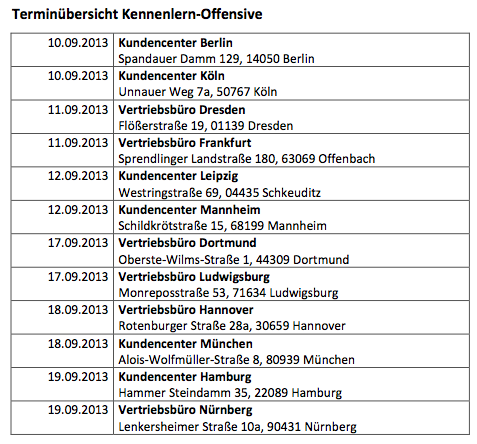 Terminübersicht Kennenlern-Offensive