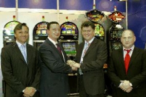 Sie gründeten ein Joint Venture mit Zukunft (v.l.n.r.)<br> Rolf Falke(Geschäftsführer Merkur Casino),<br> Rolf Klug (Vorstandsmitgliedder Gauselmann Gruppe),<br> Roman Shirokov und <br>Boris Kuzenko (Villart Industry Group) Der neue Partner Villart Industry Group wurde erst 2002 von Roman Shirokov gegründet, etablierte sich jedoch binnen kurzer Zeit als eines der führenden russischer Unternehmen für Produktion und Vertrieb modernster Slot Machines.