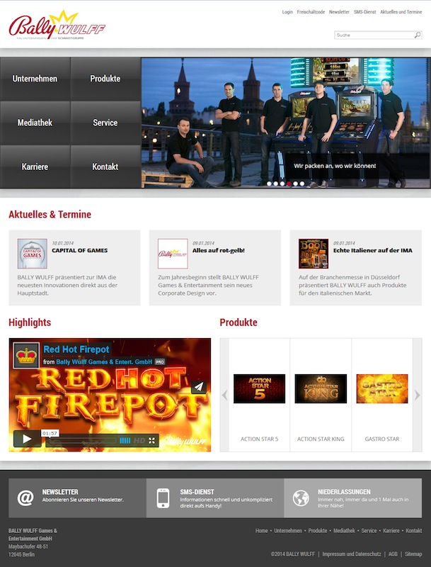 Berlin, den 13.01.2014. Bally Wulff Games & Entertainment stellt seinen neuen Webauftritt vor und erlaubt einen spannenden Blick hinter die Kulissen des Unternehmens. Dabei informieren die Berliner über aktuelle Produkte, präsentieren interessante Jobausschreibungen und vereinen dadurch die Vorteile einer klassischen Webseite mit denen Neuerungen des Web 2.0.