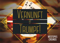 Mit „Vernunft ist Trumpf!“ und fünf weiteren Motiven ruft die WestSpiel-Gruppe im Rahmen ihrer Initiative „Mach’s bewusst!“ an allen sechs Standorten zum verantwortungsvollen Umgang mit Glücksspielen auf.
